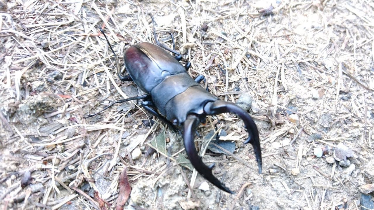 ペットと動物雑木林で木から下りてくるノコギリクワガタを発見しました。