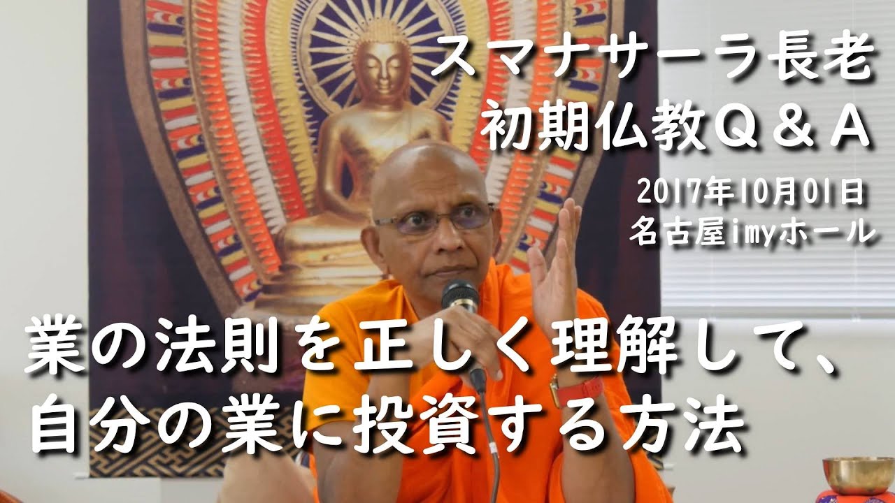 2017年10月01日(日)名古屋市imyホールで行われた「名古屋初期仏教デー」より、スマナサーラ長老と参加者の質疑応答です。(撮影:東海ダンマサークル 船橋壯吉さん、字幕作成:関口玲さん)