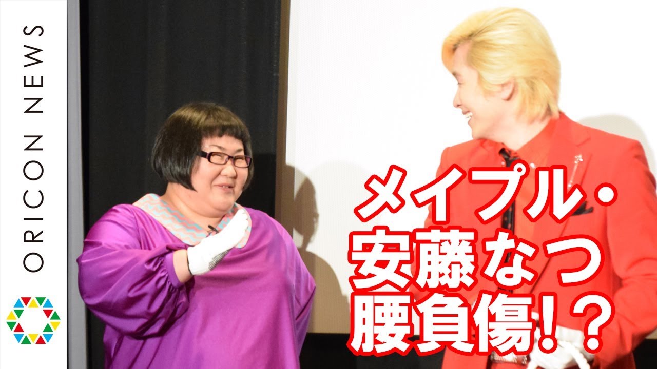 お笑いコンビ・メイプル超合金が9日、都内で行われた映画『ネイビーシールズ ナチスの金塊を奪還せよ!』の公開直前イベントに出席。先輩芸人・小島よしお擁するマッチョ軍団との三番勝負に臨んだ安藤なつは、綱引き対決で腰を痛めるハプニングに見舞われ、大勢の報道陣を前に苦悶の表情を浮かべた。体重差で有利かと思われたメイプル超合金だが、綱引き対決に敗れ、その場に倒れ込んだ。