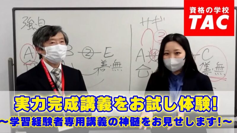 過去の試験で「あと数点」が足りずに、合格を逃してしまった方。そんな方に最適なTACのコースが「実力完成本科生」です。