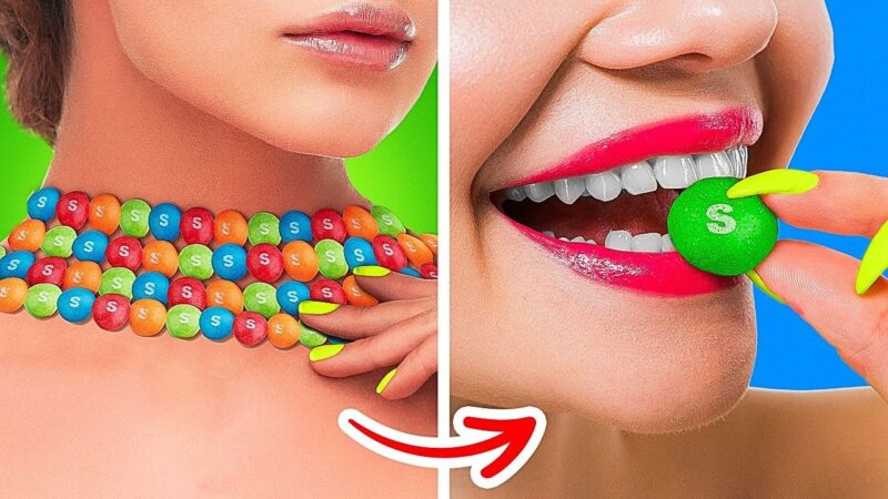 食べ物は美味しいので、いろんなところに持って行きたいものですが、食べ物が許可されない場所もありますよね? 今回は、教室や他の場所に食べ物を持ち込むためのクレバーな方法や、好きな食べ物の裏ワザをご紹介します。 まず最初は、キャンディー・ブレスレットを作ってみましょう。 針を使って糸にできるだけ多くのキャンディーを刺すだけでオッケー! これでお菓子を持ち込んだことがバレずに済みますよ!