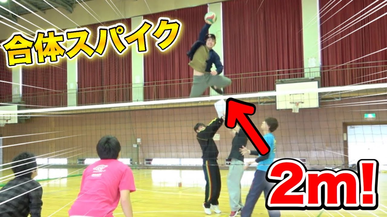 エンターテインメント 【バレーボール大技】合体2m超ジャンプでスパイクを打ったら凄かった!!